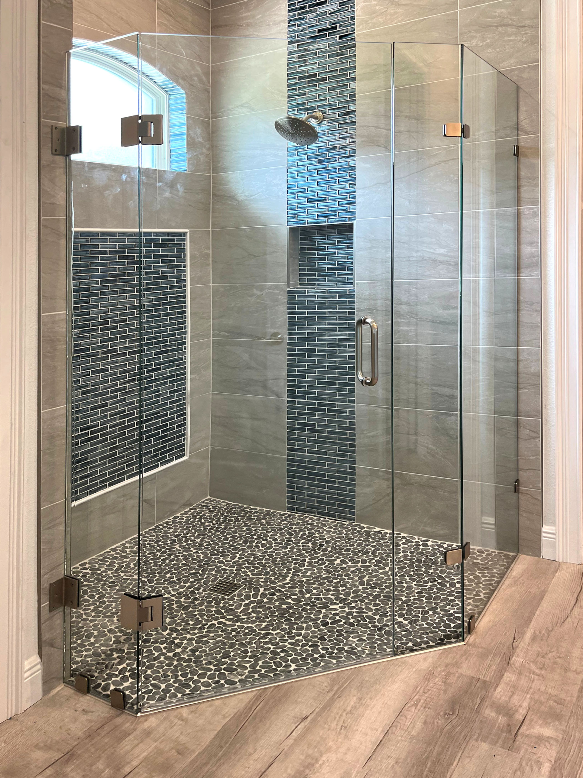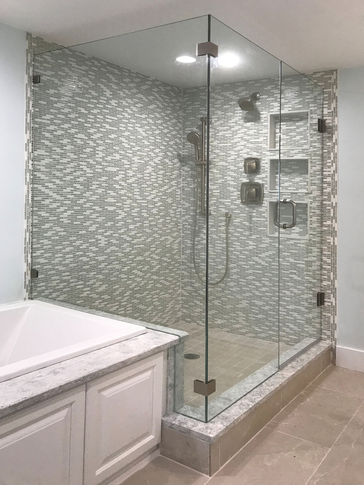 2 Fameless Shower Panels – 106′ Tall At 90°