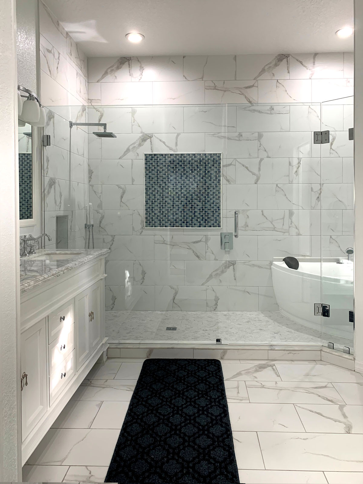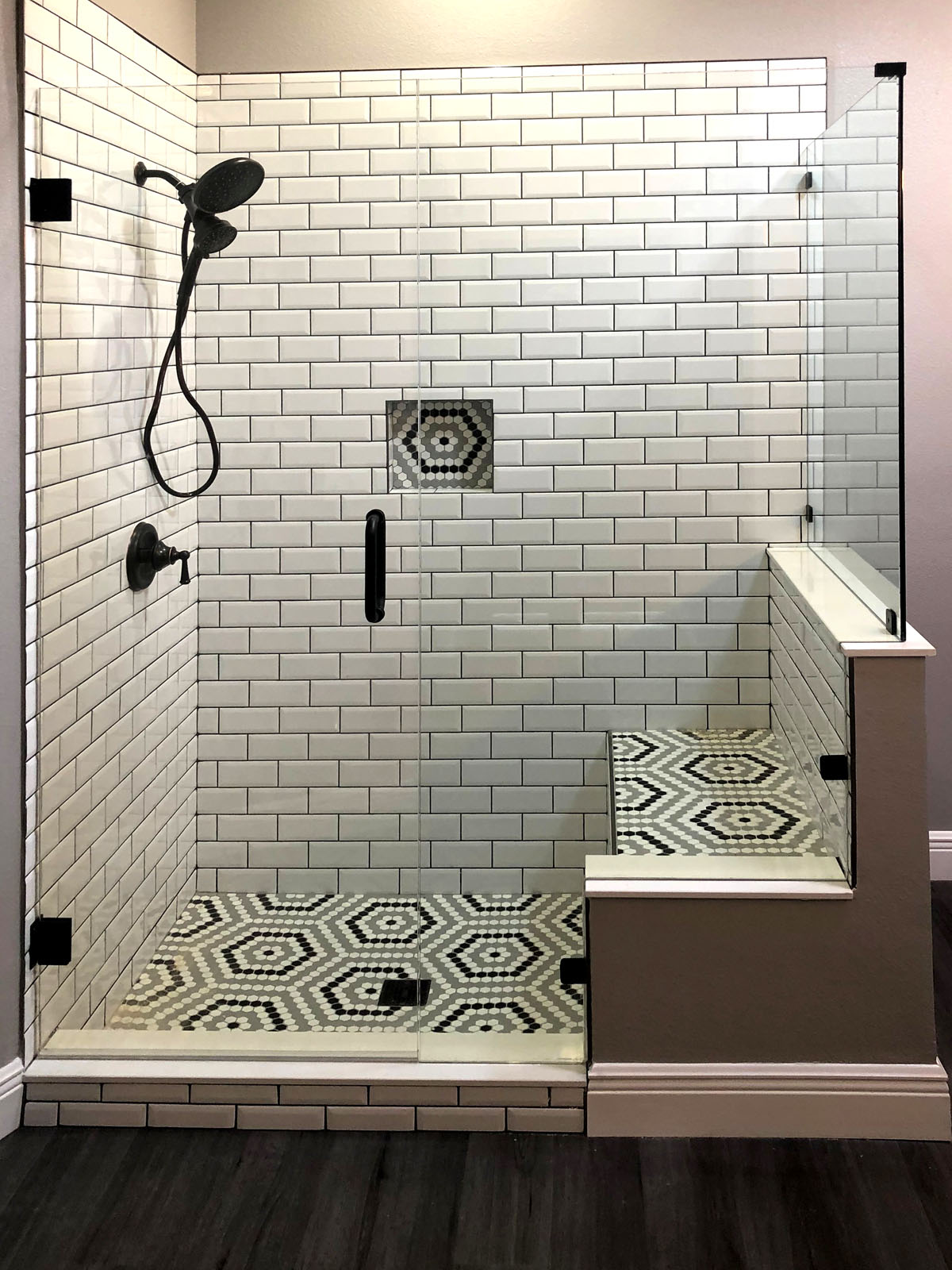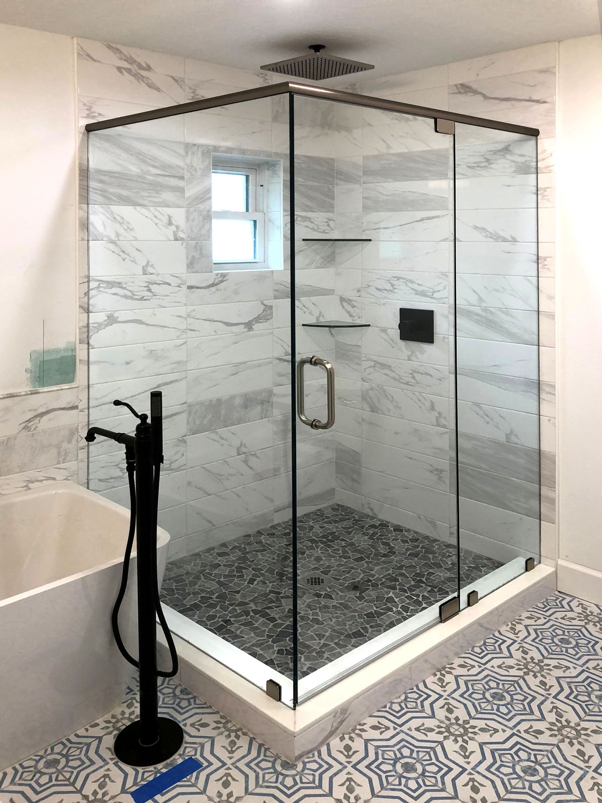 90° Frameless Shower with Stair Step Notch